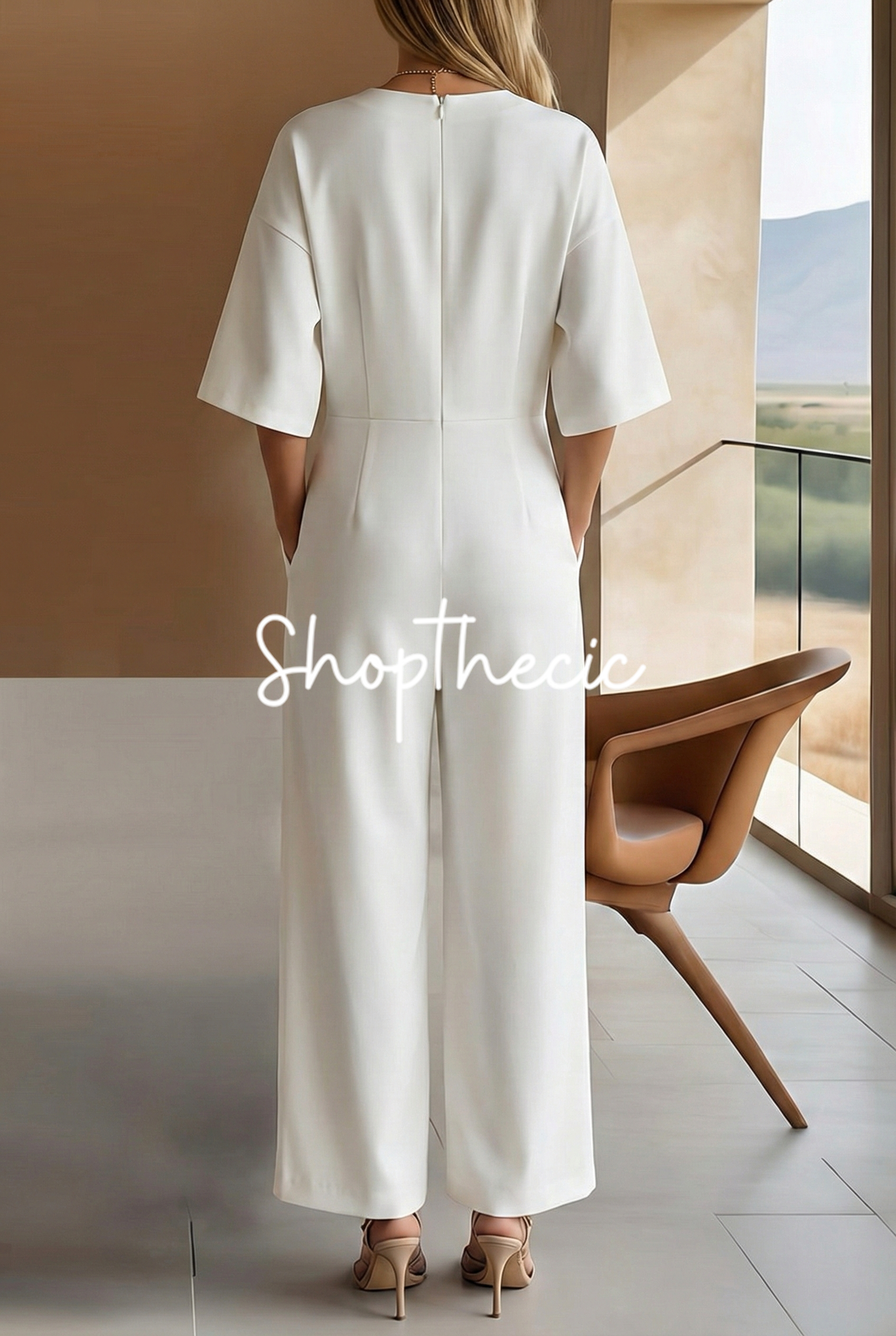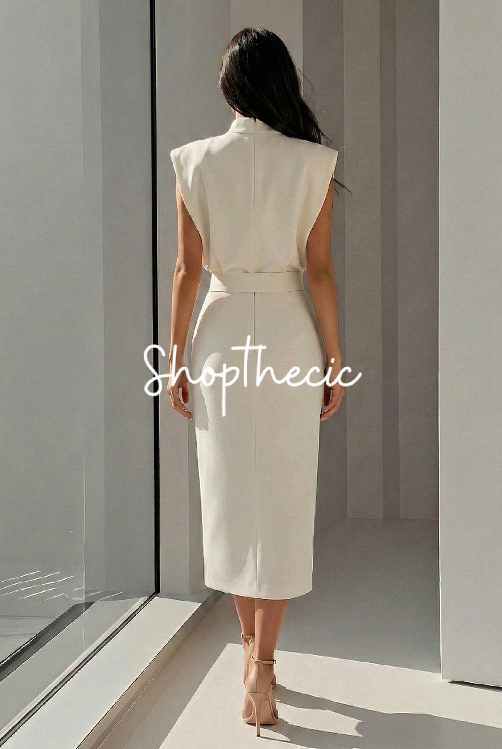 White round neck sleeveless button slit midi dress$48.00 USD$68.00 USD